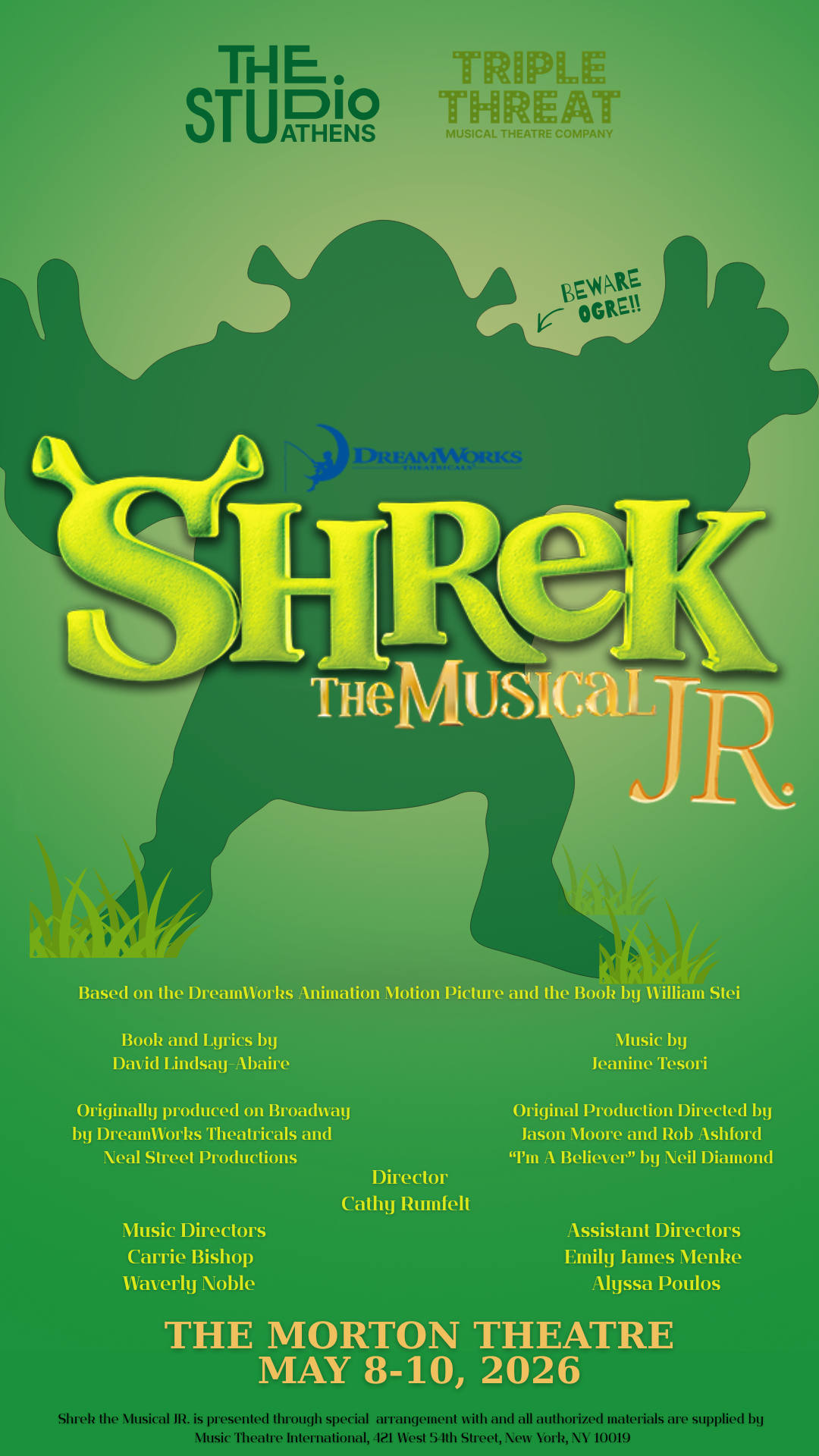 Beauty is in the eye of the ogre in Shrek The Musical Jr., based on the film and fantastic Broadway musical. It's a "big bright beautiful world" as everyone's favorite ogre, Shrek, leads a cast of fairytale misfits on an adventure to rescue a princess and find true acceptance. Part twisted fairy tale and part adventure story, Shrek JR. is an irreverently fun show with a powerful message for the whole family about staying true to who you are.
